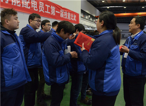 比武分别从工艺质量、工作效率、美观度、工作现场、员工风貌五个方面综合评比,经过一番激烈的角逐,下午十六时,赛果揭晓,配电公司制造中心总监王正兵宣读了技能标兵的名单,并表示像这样的比武,今后每年都会举行两次,希望大家赛出风格,赛出水平。工会主席朱建生、副主席蒋震宇、配电公司副总经理张炳贵分别给三位技能标兵颁发荣誉证书。朱建生主席对配电工匠们优秀的成绩高度肯定,并寄予厚望。